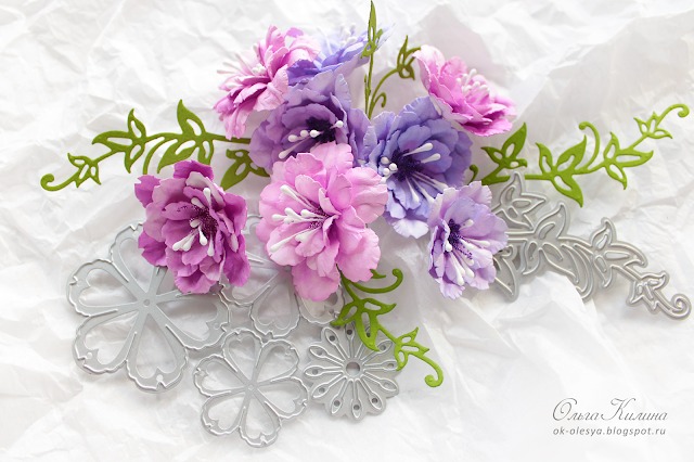 как из бумажной вырубки получаются объемные цветы для скрап-работ и декора.