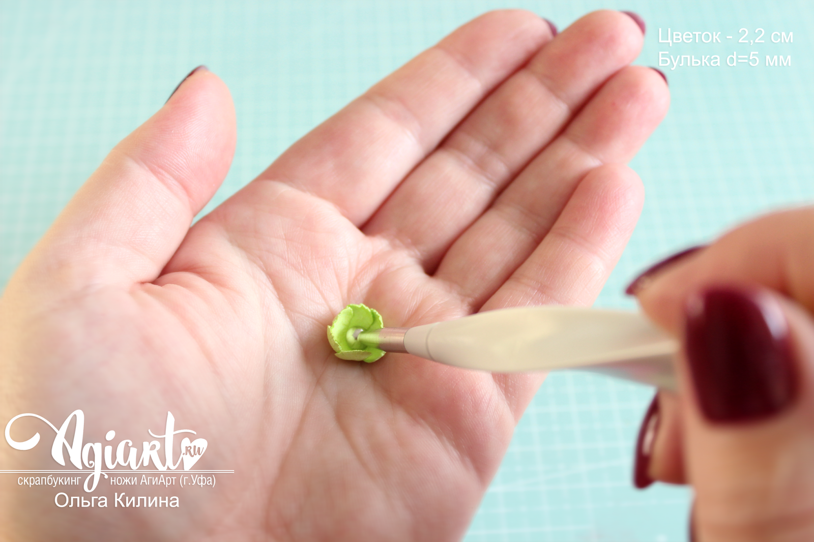 3. С вырубкой маленького размера все просто - на ладони продавливаю цветок по центру - лепестки приподнимаются. Здесь булька чуть крупнее - 5 мм.