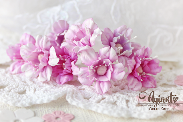 Для вдохновения я подготовила соцветия дикой вишни - сакуры... Никогда не видела ее вживую, очень хочется попасть весной в Японию или в тот край, где цветет сакура! В создании цветов мне помогли ножи АгиАрт "Набор цветов "Сакура" - вырубка 22, 25, 29 мм.