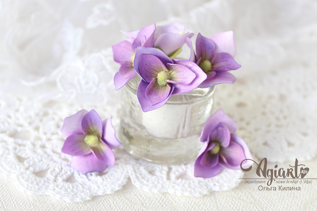 В первую очередь меня привлекли, конечно, подснежники. Для их создания я использовала нож Агиарт "Лилии" - тот, что меньшего размера. Чашелистики - маленькие цветочки из "Сета мелких цветов"