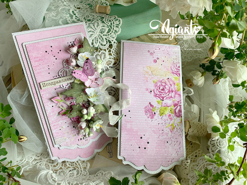Уже на основе вырубки я выстраивала цветочную композицию обеих открыточек.