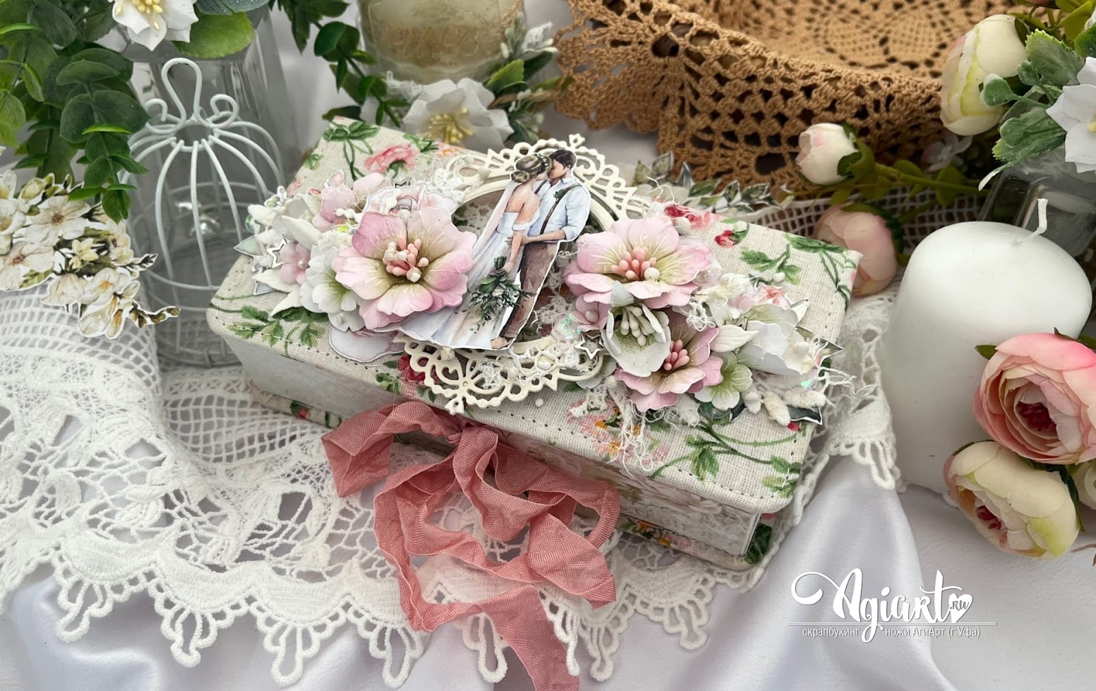 Я решила сделать основу тканевой, выбрала лёгкий, растительный принт. Но с цветами и вырубкой, сделанными ножами от Аги Арт эта нежная шкатулочка заиграла. Приобрела нежный, завершённый вид)))